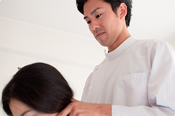 まず歩き姿勢を診させて頂きます。(歩行困難な方には行いません)さらに前後・左右・回旋など、体を動かせて頂きながら整体的な見方で身体を把握します。どのような動作で痛みが発生するのかなども診ます。慢性的な肩凝り、腰痛、膝痛など様々な症状で首は関わりますので、首の動きなども細かく診ていきます。